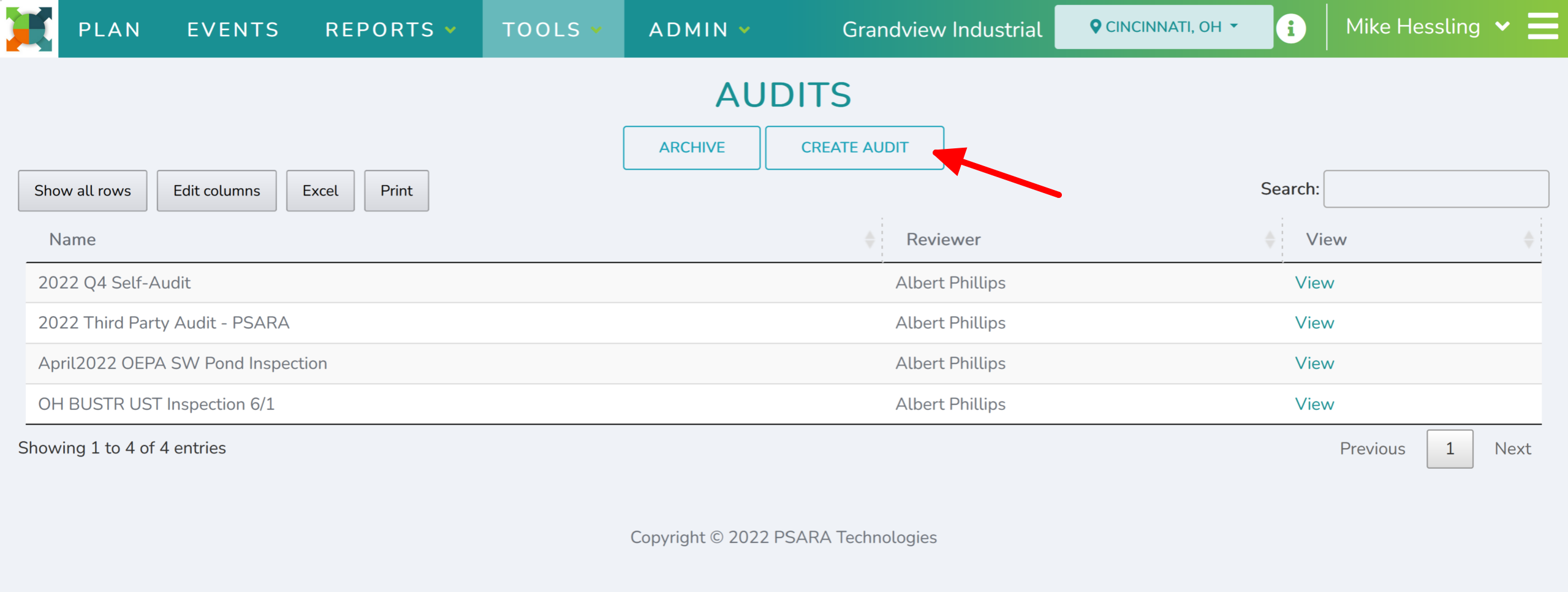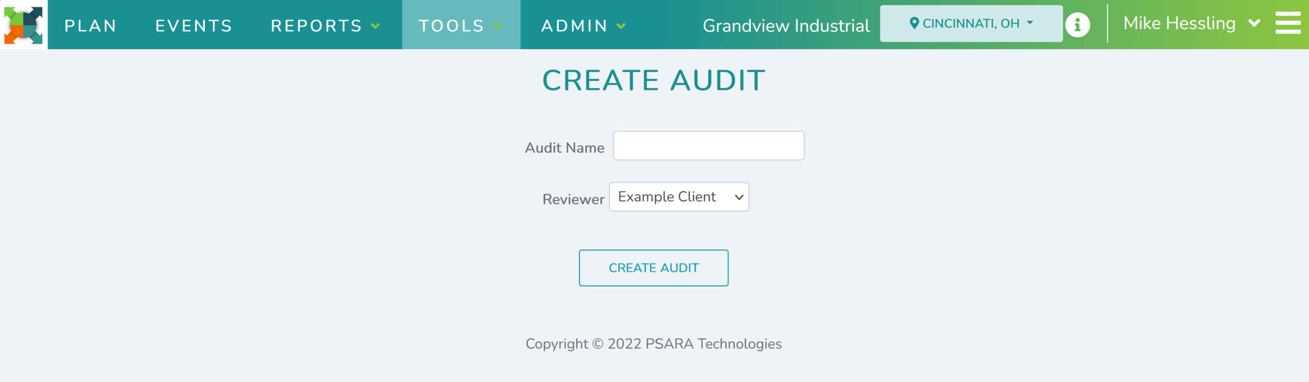 - Enter an Audit Name and select a Reviewer, then click ‘Create Audit’ to begin recording findings and mapping out corrective actions.